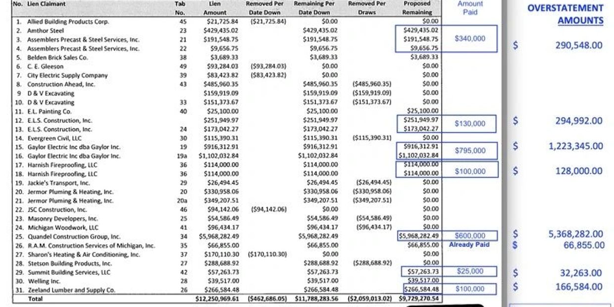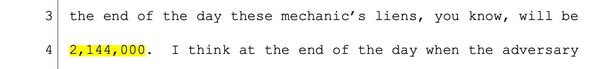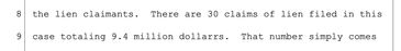 Hammer said, “There are 30 claims of lien filed in this case totaling 9.4 million dollars"