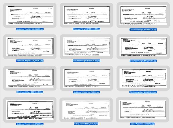 These are only a fraction of the checks paid to Dickinson Wright, which were added to the cost to complete the project.